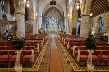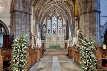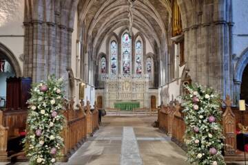 When you have such a beautiful backdrop as Brecon Cathedral, you get the most amazing canvas in which to decorate. At Brecon Cathedral, we had the opportunity to create stunning pillar flower arrangements that enhanced the cathedral's splendor.