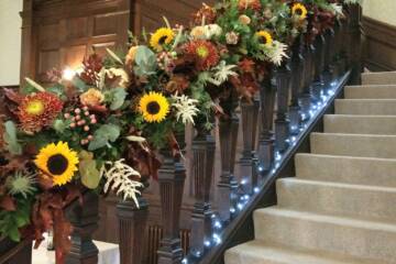 Specialist in floral installations for staircases, arches, and architectural spaces.